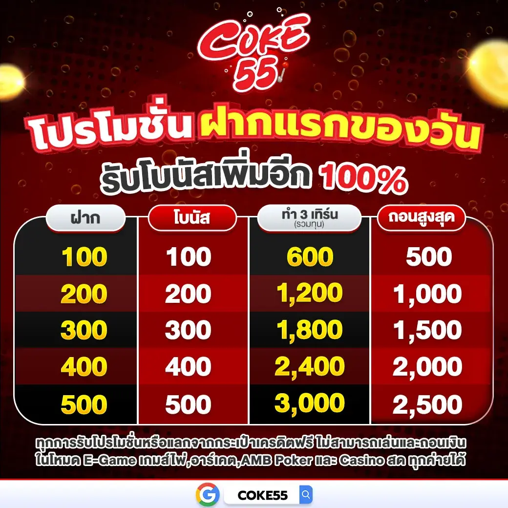 coke55 เว็บพนันสายสนุก สดชื่น ครบวงจรทั้งสล็อต คาสิโนสด และแทงบอล เล่นง่าย แตกบ่อย จ่ายจริงทุกเกม ระบบฝากถอนออโต้รวดเร็ว โปรโมชั่นคุ้มค่า พร้อมทีมงานดูแล 24 ชั่วโมง มั่นใจได้ทั้งความปลอดภัยและความสดใหม่ทุกการเดิมพัน